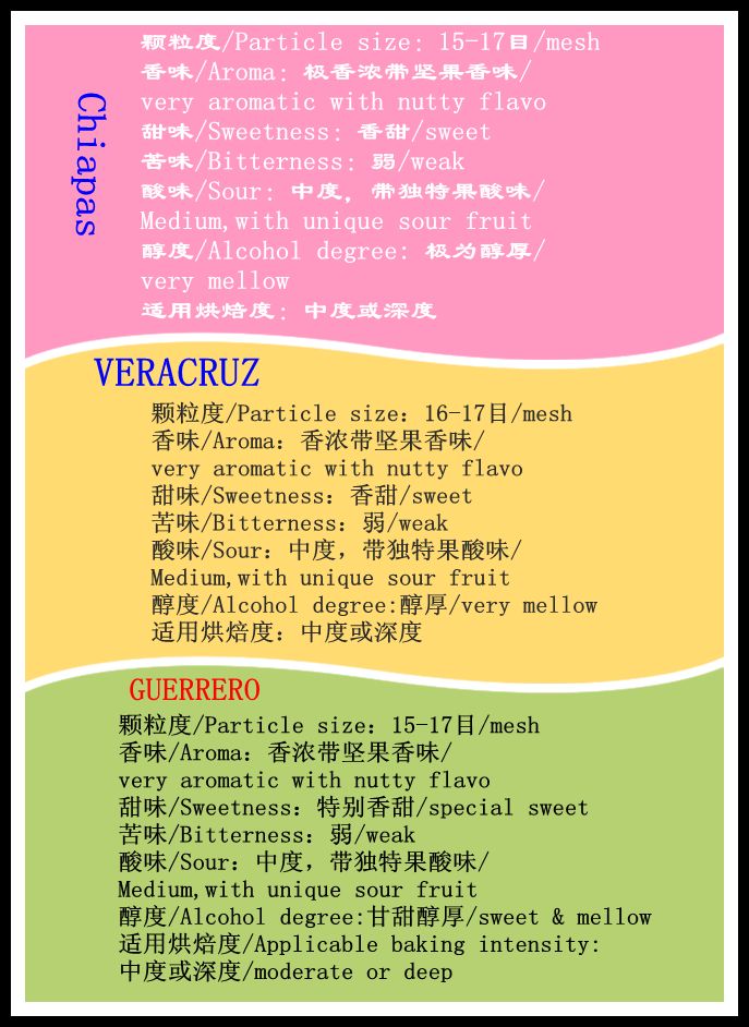 以上为墨西哥三个不同产区的咖啡豆品种,如需购买请备注说明需要哪个一个品种,感谢您的配合!